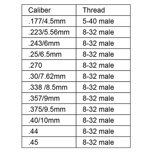 .177, .22, 6mm, .25, .27, .30, .338, .35, .357, .40, .44, .45, .50cal.