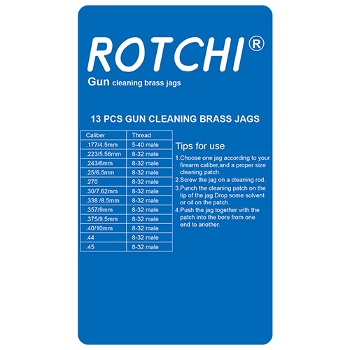 Pachet de 13 bucăți set jags din alamă pentru curățarea pistolului, pachet blister, dimensiuni: