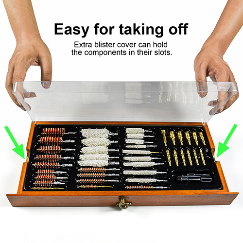Kit universal de curățare a pistolului cu carcasă din lemn de lux cu suport pentru pistol