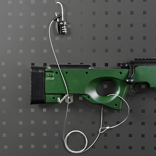 1, Un capăt este fixat în buclă pe raft, celălalt capăt este blocat cu o încuietoare digitală. 2, Cablul lung poate fi folosit pentru a bloca mai multe arme sau un singur pistol pentru afișare ușoară fără a fi furat. 3, încuietoarea digitală este sigură și nu trebuie să vă faceți griji cu privire la pierderea cheii. 4, Cablul gri nu afectează vizual afișarea pistolului, iar cablul intern de sârmă de oțel asigură siguranta absoluta. 5, Cutia rotundă și suportul său de înfășurare intern sunt convenabile pentru depozitare și transport.