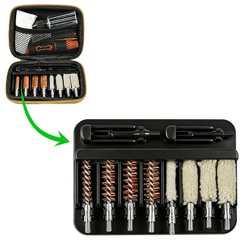 Setul de curățare a pistolului include 4 dimensiuni (.22, 9mm, .40, .45cal.). Pânză OX acoperită