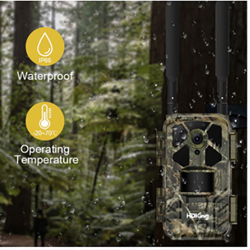 4G Wireless / Design de antenă duală / Impermeabil IP65 / Senzor CMOS de 5,0 M pixeli / Timp de declanșare rapidă 0,5 S / Timp lung de așteptare / Interval lung de vedere pe timp de noapte / Temperatura de funcționare