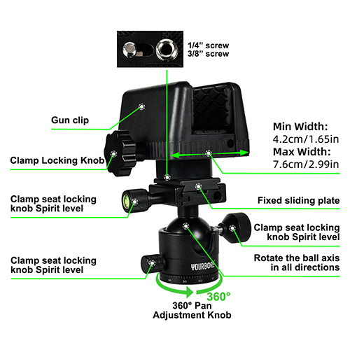 OEM CNC din aluminiu 360 de grade cu cap sferic pentru șa de tragere clemă de sprijin pentru vânătoare baston de tragere monopied trepied