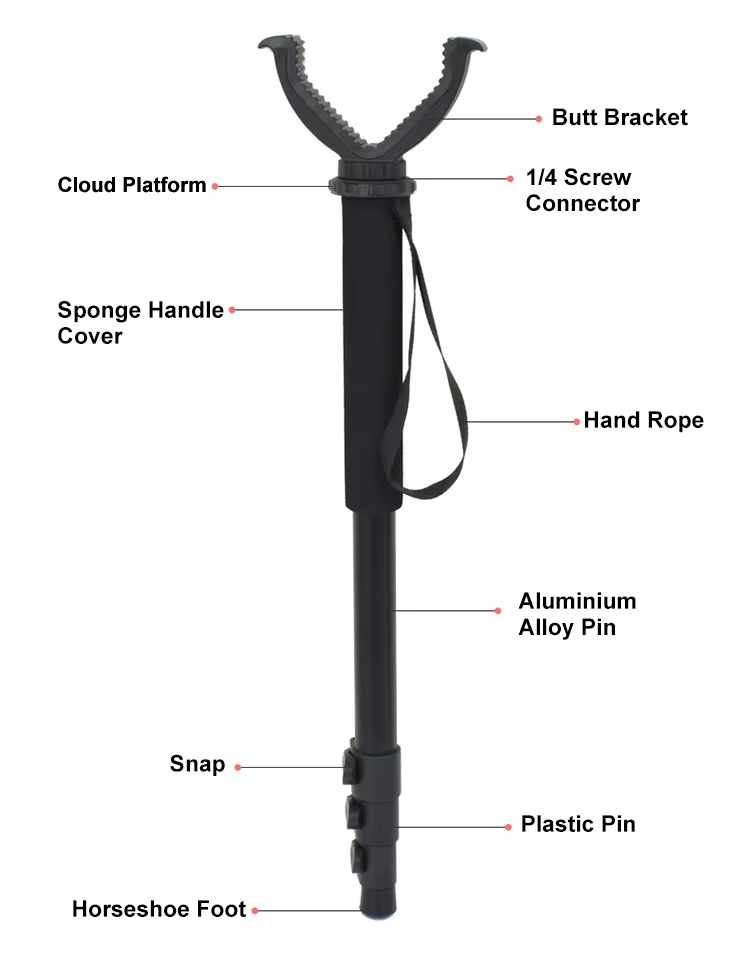 Trepied portabil pentru pistol tactic în aer liber, suport pentru vânătoare, tijă telescopică de tragere, trepied rotativ în formă de V