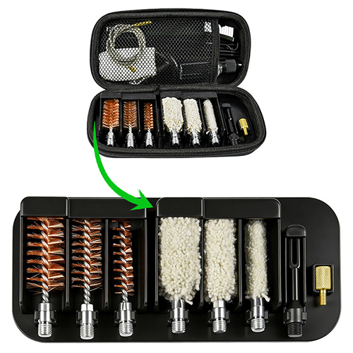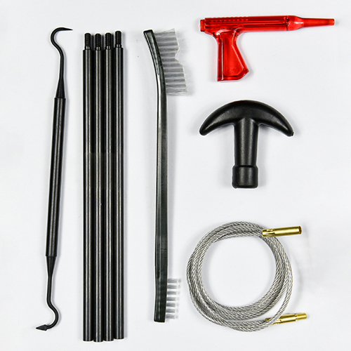 Setul de curățare a puștilor include 3 dimensiuni (12/16G, 20G, 410). Perii de alama si mopuri de bumbac, 4 tije 1 calbe. Nisipuri și culoare neagră pentru alegeri.