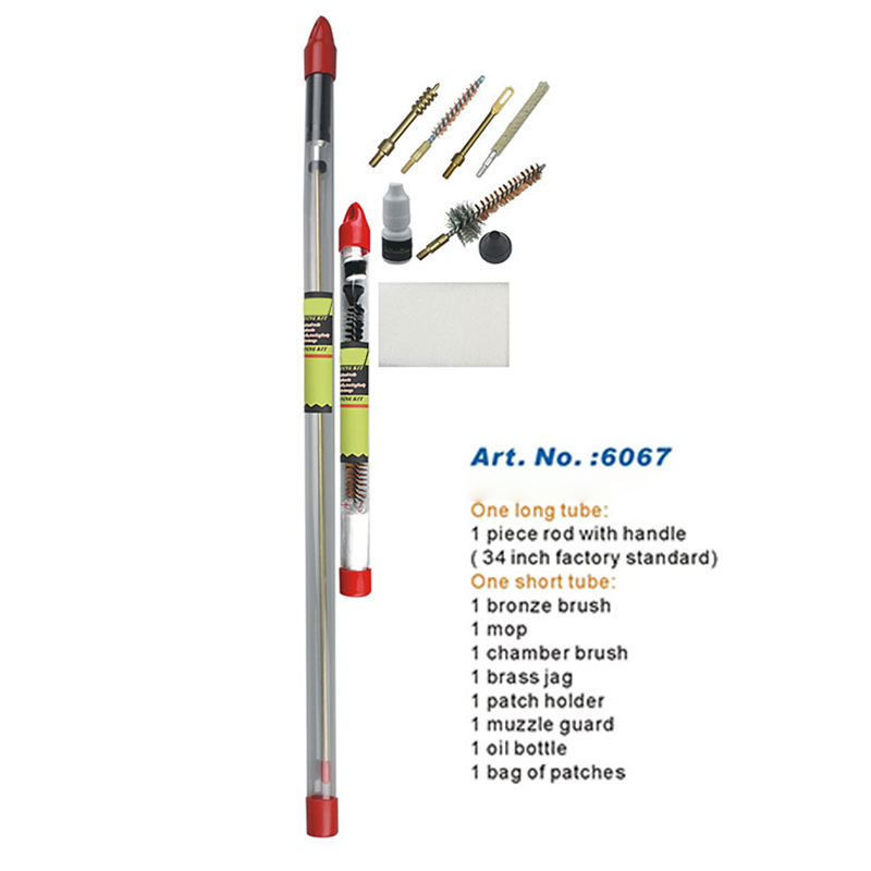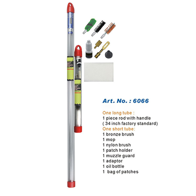 Kit de curățare pentru pușcă Pachet de tuburi suspendate cu tijă lungă dintr-o bucată ● Tijă lungă dintr-o singură bucată 34 inch/860 mm, fără tăiere, fără pas pe tijă. ● Perii și accesorii pentru sarcini grele bune pentru curățarea găurilor. ● Mânerul rotativ din aluminiu rulează liber ● Tub lung transparent ambalat, pentru a lua si depozita cu usurinta. ● Ușor de pus stick-ul și logo-ul OEM sau al clientului
