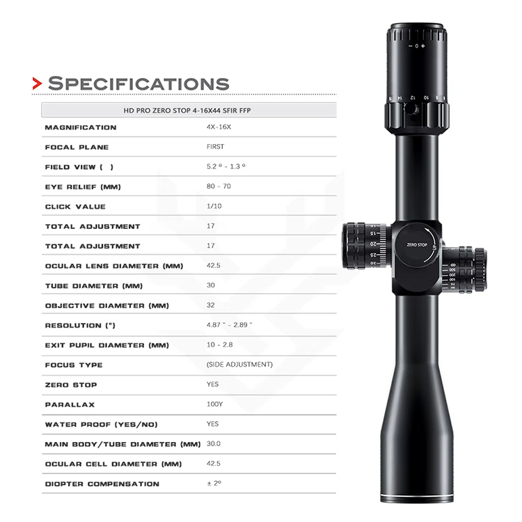ZERO STOP 4-16X44 SFIR FFP-A 30MM diametru HD cu transmitere a luminii Zero Stop Luneta de vânătoare Ffp